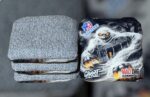 Bags are stitched using the strongest nylon thread on commercial sewing machines to add strength and durability for both indoor and outdoor play. Smaller Pro Resin. REGULATION SIZE WEIGHT: Sewn to 6 inches by 6 inches square and regulation 1.25 inches thick. All bags measured at a regulation weight of 1 lb.