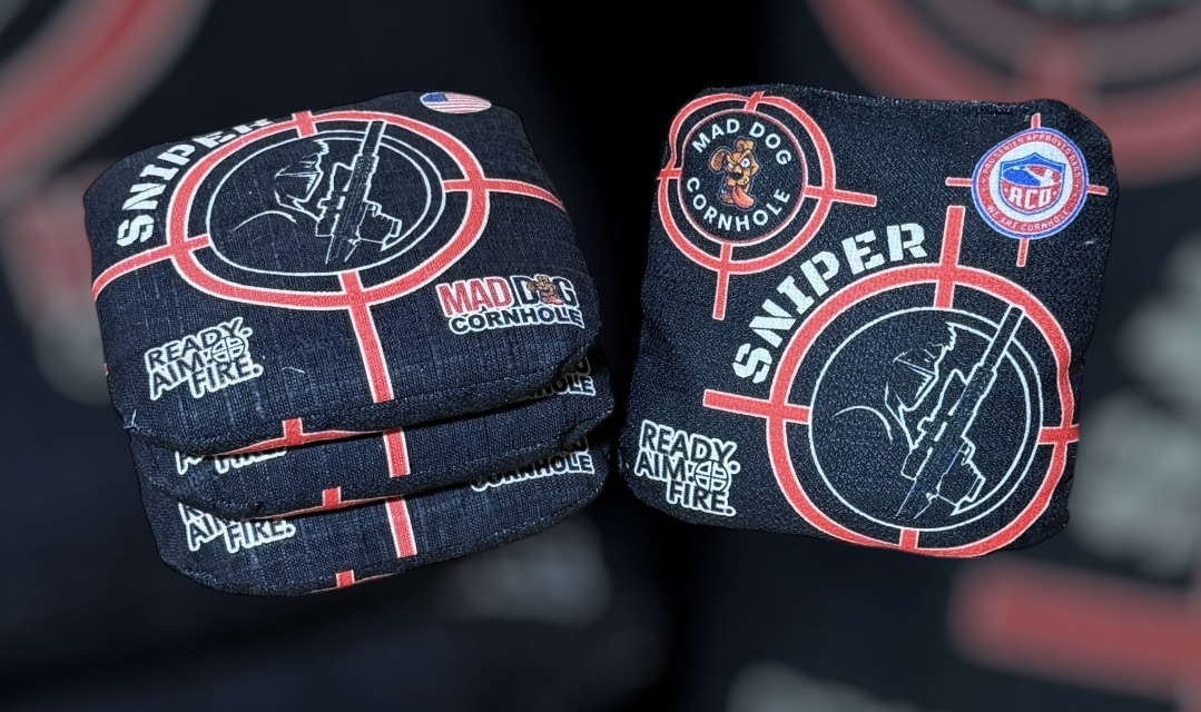 SNIPER bags 8 speed material on the fast side, allowing for lightning-fast. On the slow side. 5 speed material, providing players with more options for strategy. these bags offer the perfect feel and consistency for all levels of cornhole play